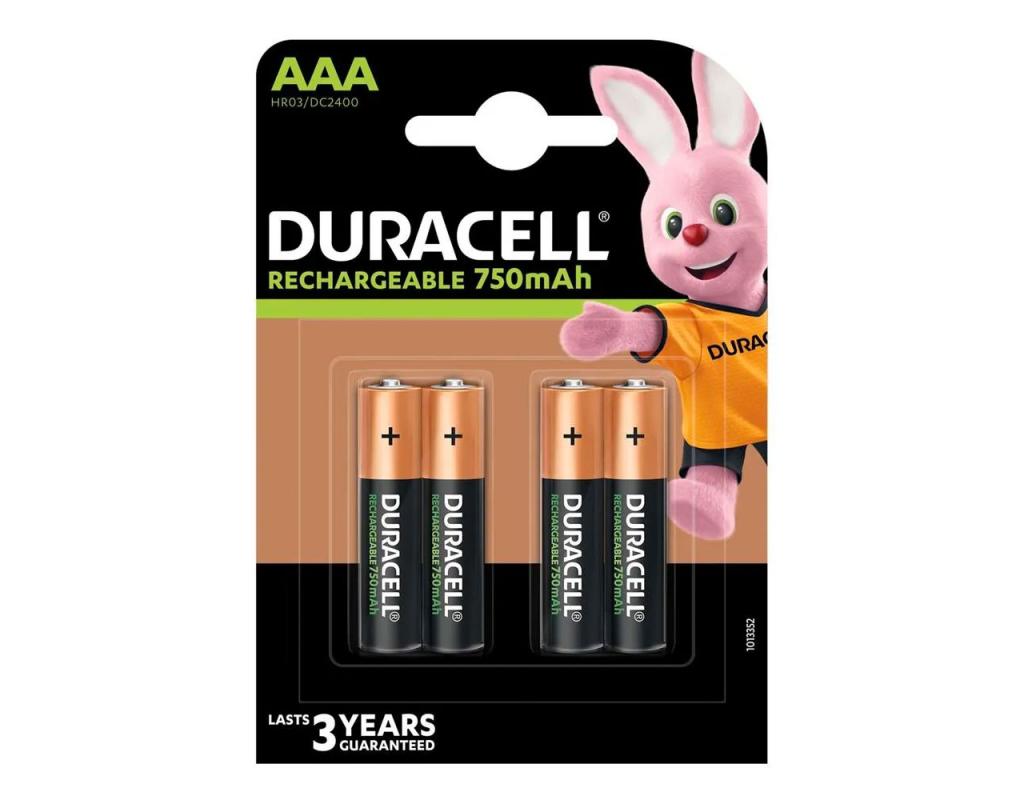 - Duracell Rechargeable AAA 750mAh batteries can be recharged 100's times.
