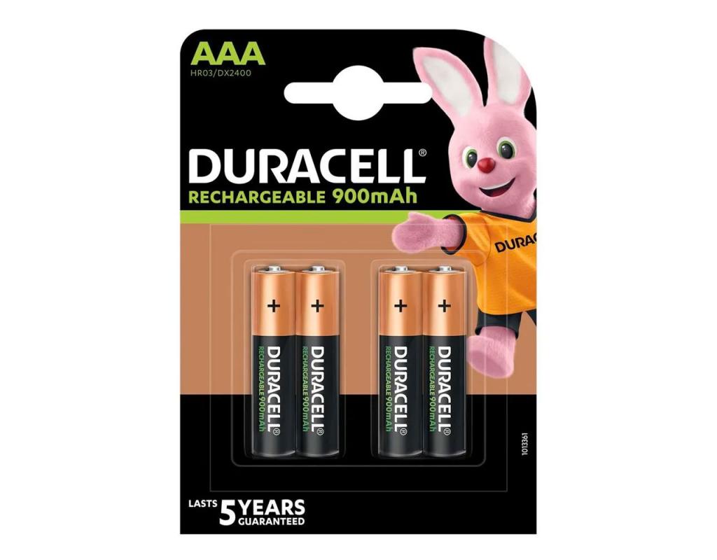 - Duracell Rechargeable AAA 900mAh batteries can be recharged 100's times.