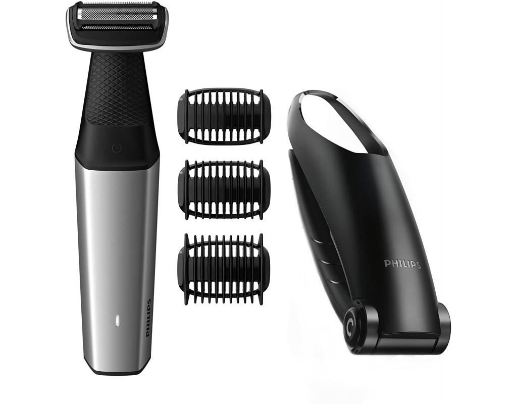 Now you can confidently trim and shave everywhere on your body with one tool. This Philips full body trimmer for men cuts hair at 3 different lengths for clean, even results on your back, shoulders, chest, abs, underarm, arms, groin and legs.