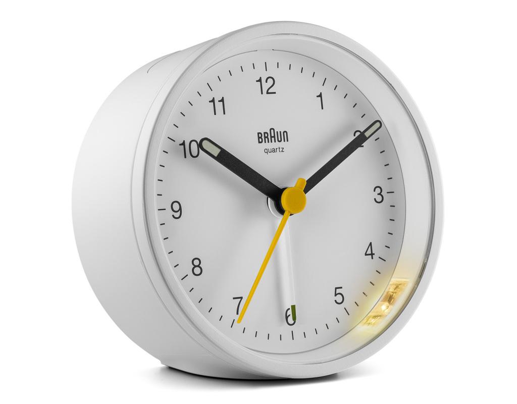 Braun BC12W Classic Analogue Alarm Clock with Snooze and Light - White