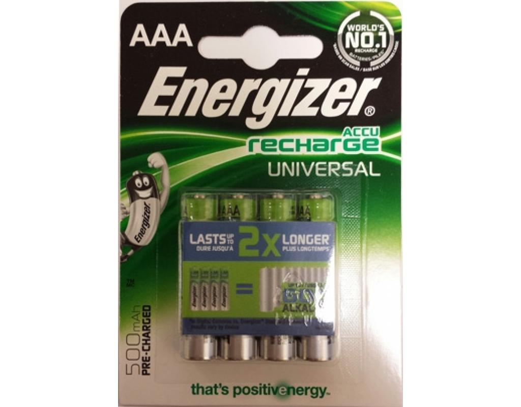 Energizer 638624 500mAh NiMH AAA Rechargeable Batteries Carded 4