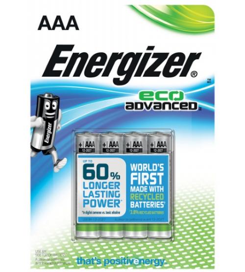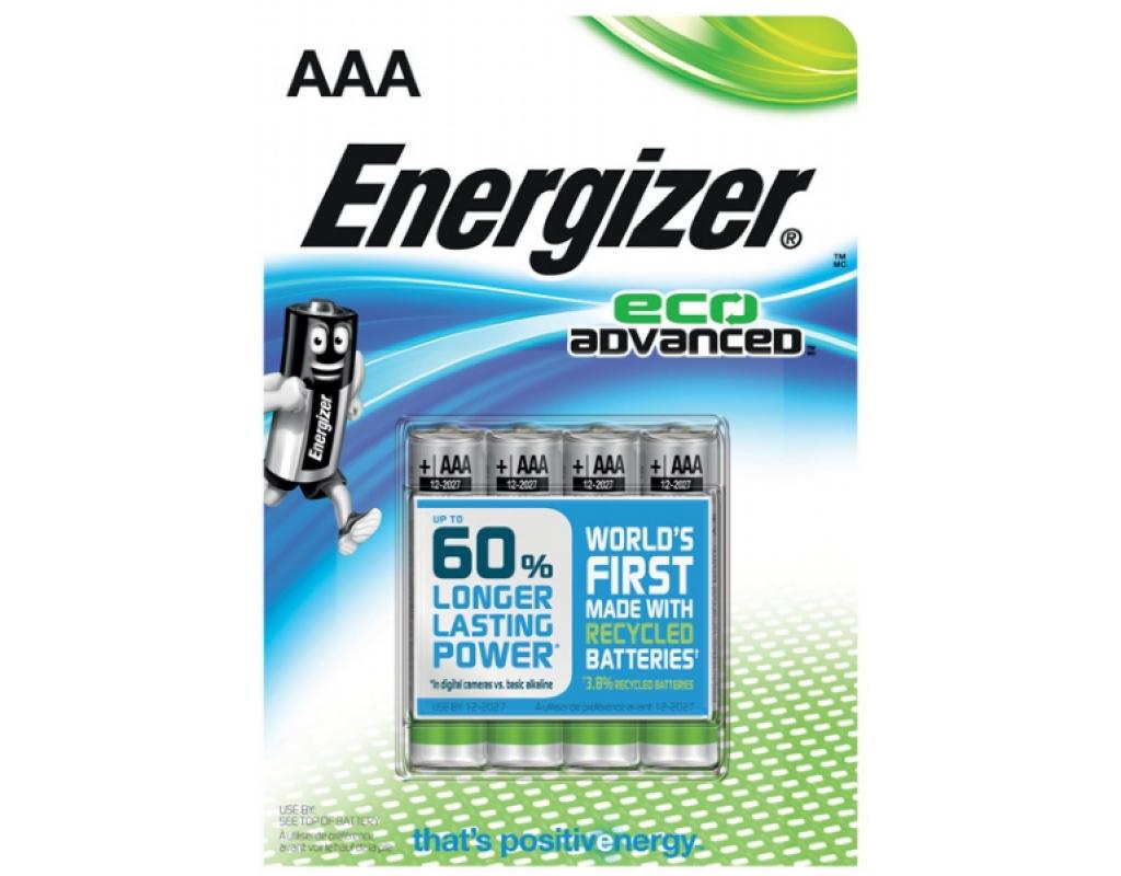 EcoAdvanced AA and AAA batteries are Energizer's highest performing, most responsible alkaline batteries. Now enjoy performance for your most critical devices, while creating less impact on the planet. Energizer EcoAdvanced creates less impact on the planet by requiring less mining of virgin material and reducing the amount of batteries consumers need to power their devices resulting in less waste.