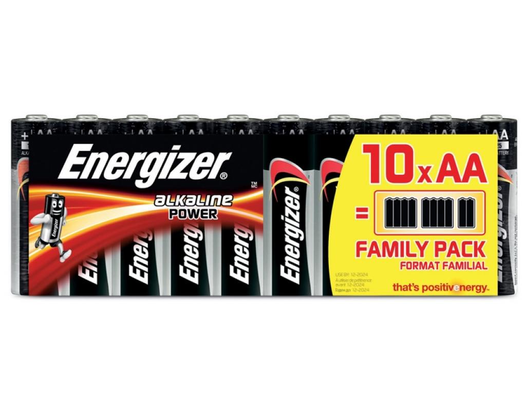 Energizer E300172900 Alkaline Power Family Pack AA Batteries Carded 10