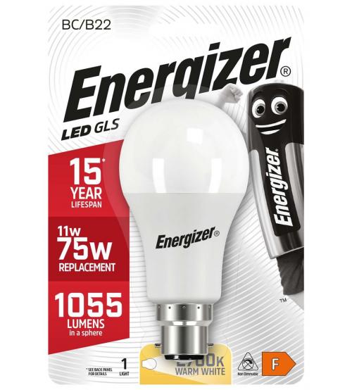 Energizer LED Lighting GLS 1060LM/Lumen B22 Light bulb Warm White. The Energizer lighting range is manufactured to the highest standards, compliant with the latest lamp industry regulations. The LED rage includes high performance, economical and sustainable technologies. The collection compromises all of the most popular shapes and offers dimmable and non-dimmable solutions.