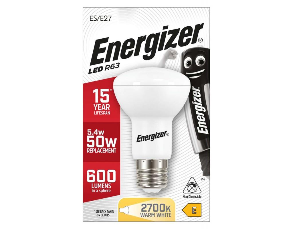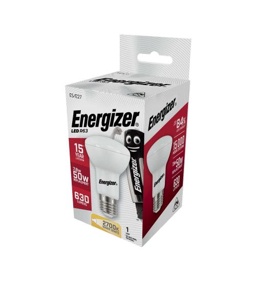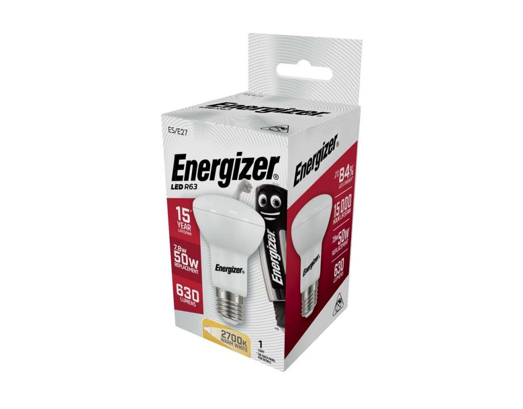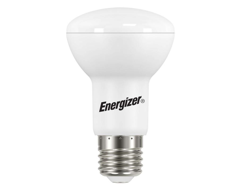 Energizer High Tech LED R63 600LM Warm White light bulb in a full colour box.