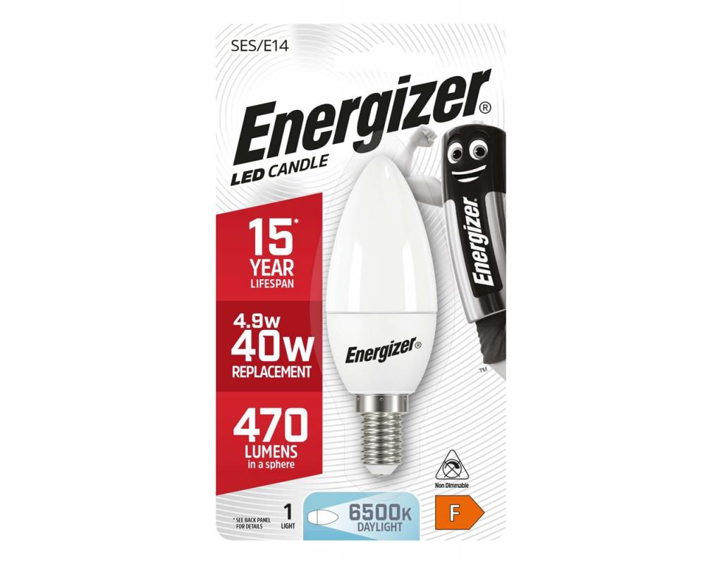 Energizer LED Lighting Candle 470LM/Lumen Opal E14 Light bulb Natural Daylight. The Energizer lighting range is manufactured to the highest standards, compliant with the latest lamp industry regulations. The LED rage includes high performance, economical and sustainable technologies. The collection compromises all of the most popular shapes and offers dimmable and non-dimmable solutions.