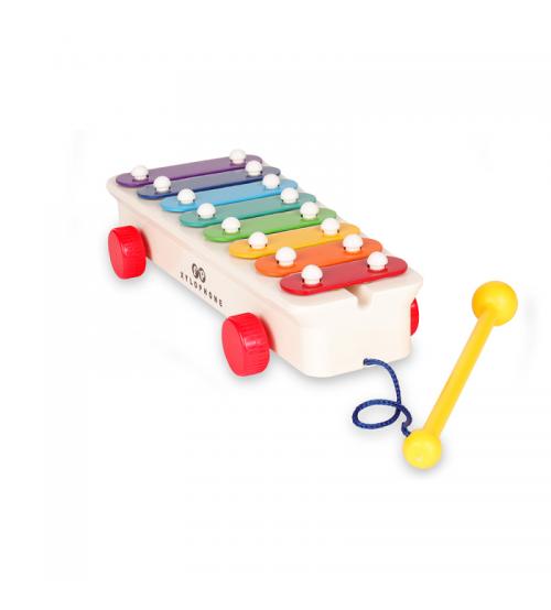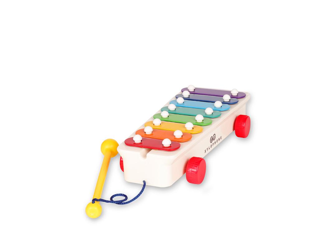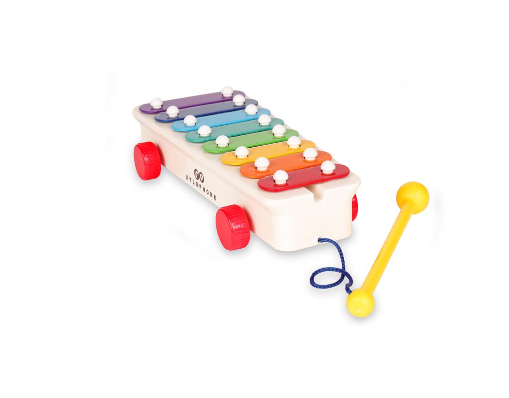 The Classic Xylophone 8 colorful keys encourage early music-making creativity, helping young ones develop a sense of accomplishment. And as their musical abilities grow, little ones can follow the colors to create a real song! The mallet’s attached so it never gets lost. And it’s on wheels so kids can take & make music wherever they go!