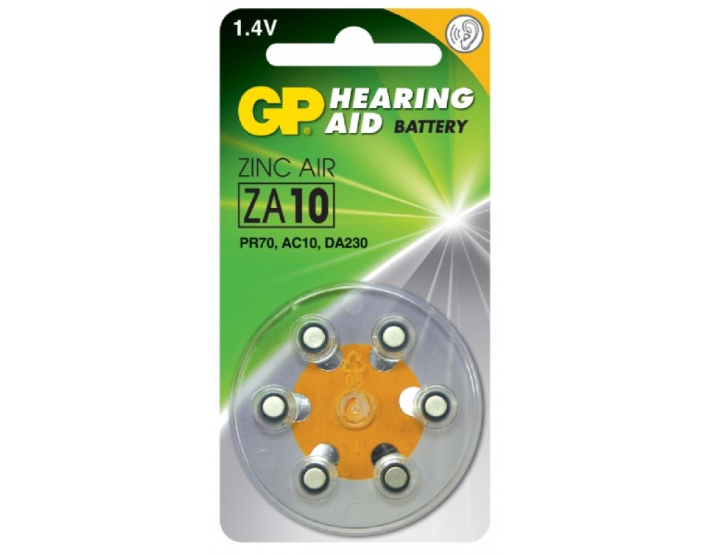 GP Batteries GPZA10-D6 1.4V Zinc Air Hearing Aid Batteries Carded 6