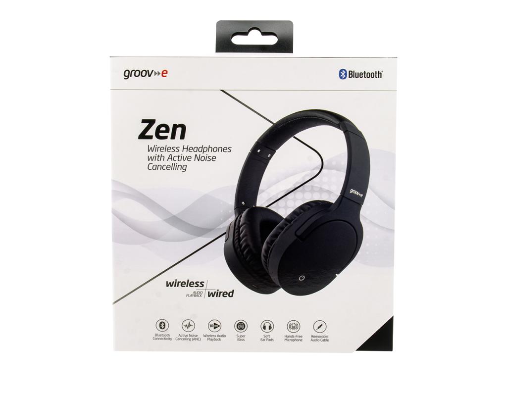Groov-e GVBT1100BK Zen Wireless Bluetooth Headphones with Active Noise Cancelling - Black