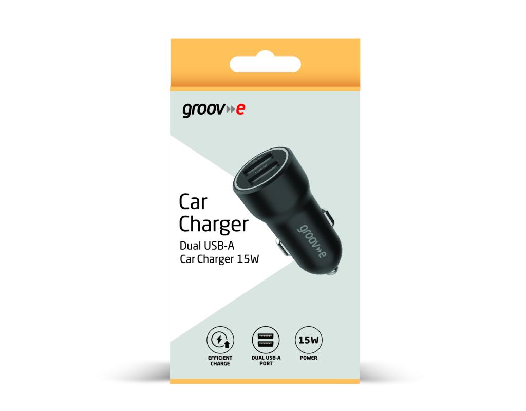Groov-e GVMA121BK Dual USB-A Car Charger 15W - Black