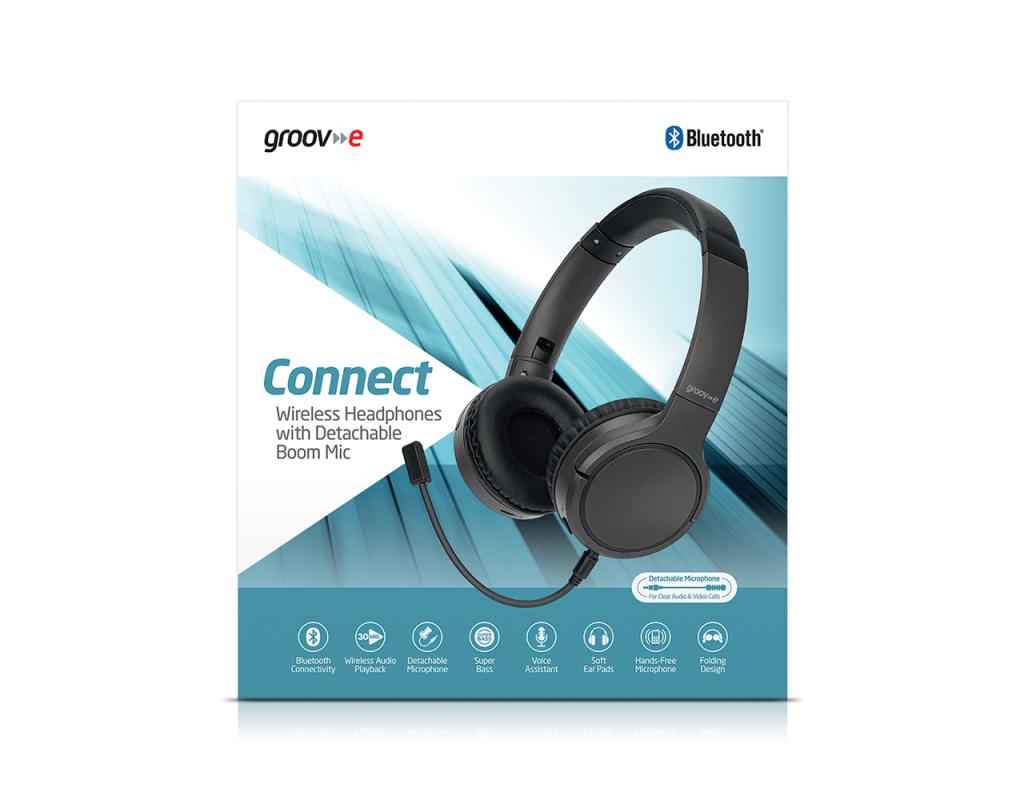 Groov-e GVBT1500BK Connect Wireless Headphones with Detachable Boom Microphone - Black
