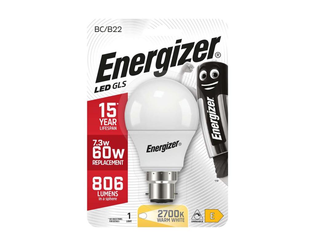 Energizer LED Lighting GLS 806LM/Lumen B22 Light bulb Warm White Dimmable Light bulb. The Energizer lighting range is manufactured to the highest standards, compliant with the latest lamp industry regulations. The LED rage includes high performance, economical and sustainable technologies. The collection compromises all of the most popular shapes and offers dimmable and non-dimmable solutions.