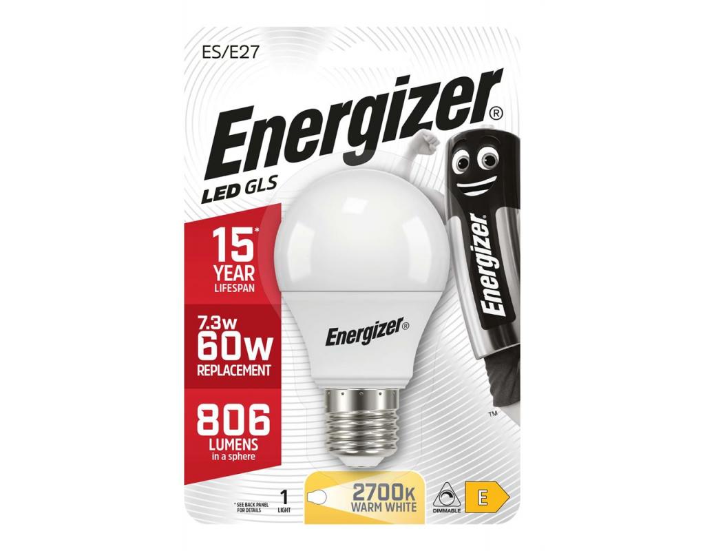 Energizer LED Lighting GLS 806LM/Lumen E27 Light bulb Warm White Dimmable Light bulb. The Energizer lighting range is manufactured to the highest standards, compliant with the latest lamp industry regulations. The LED rage includes high performance, economical and sustainable technologies. The collection compromises all of the most popular shapes and offers dimmable and non-dimmable solutions.