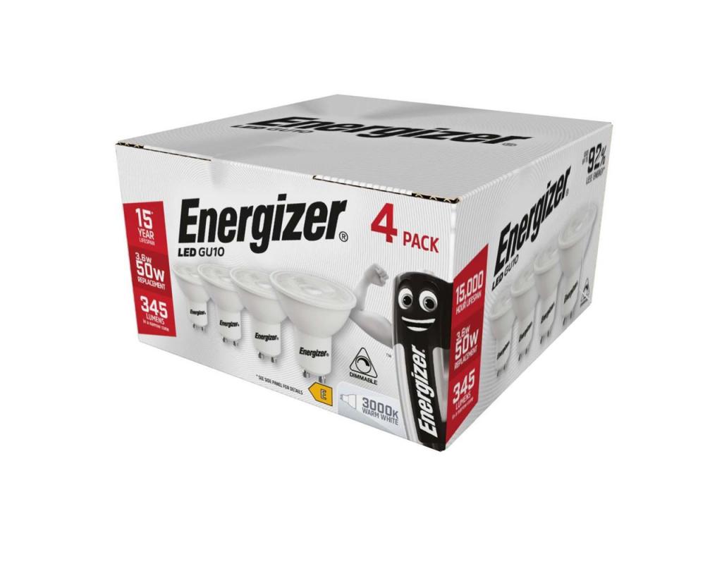 Energizer S10328 GU10 370LM 36° Dimmable LED Bulb - Cool White Pack of 4