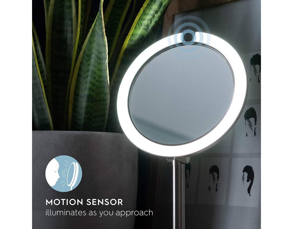 The HoMedics Twist Illuminated Beauty Mirror is a smart one! It knows when you approach and illuminates giving you the perfect and evenly distributed well-lit space to apply your make up with ultimate ease and convenience!