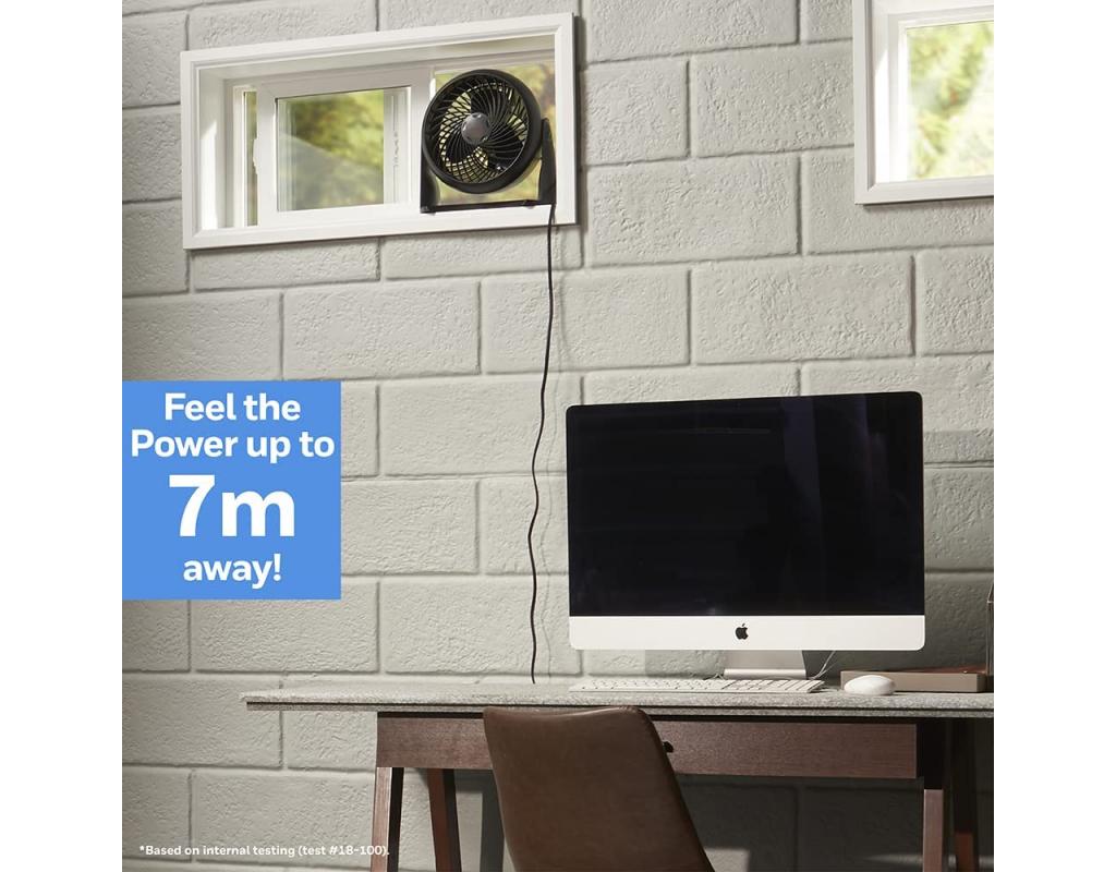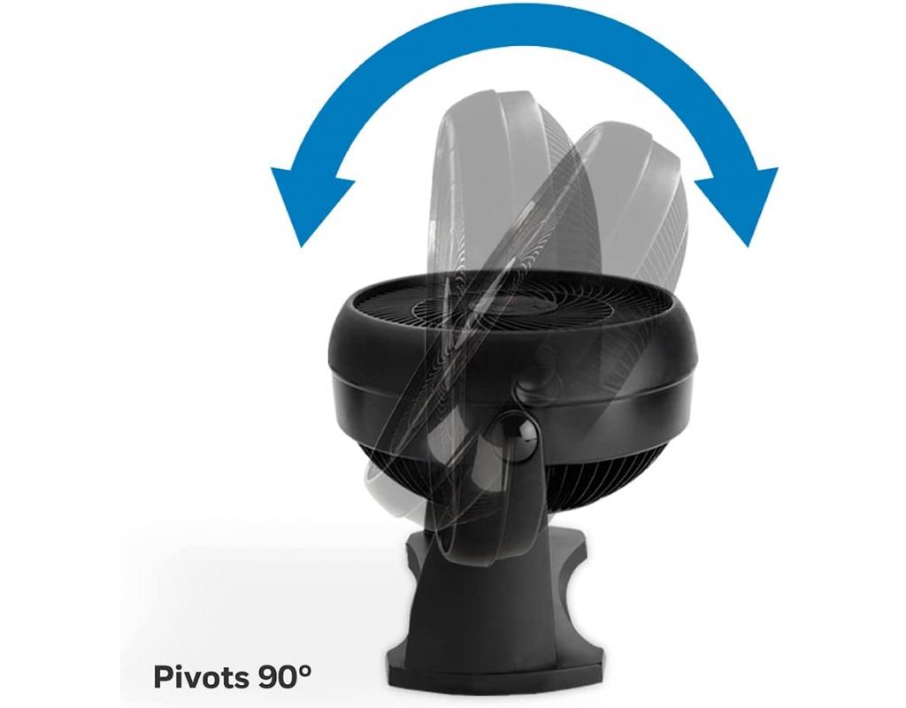 Feel the blast of the TurboForce Power Air Circulator Fan from 25 ft. away! This portable fan's 3 speed settings and 90° pivoting head are designed to work with the cooling and heating in your home to create a custom comfort zone. Uniquely engineered fan blades provide quiet, powerful personal cooling that’s great on a tabletop or mounted to the wall in your home or office.