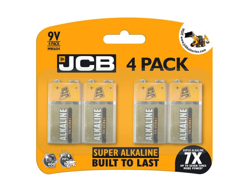 Pack of 4 9V Super Alkaline batteries by JCB.