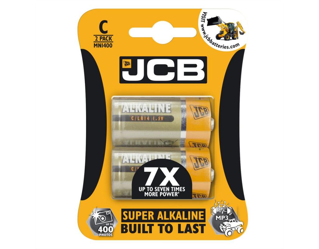 Pack of 2 C size Super Alkaline batteries by JCB.