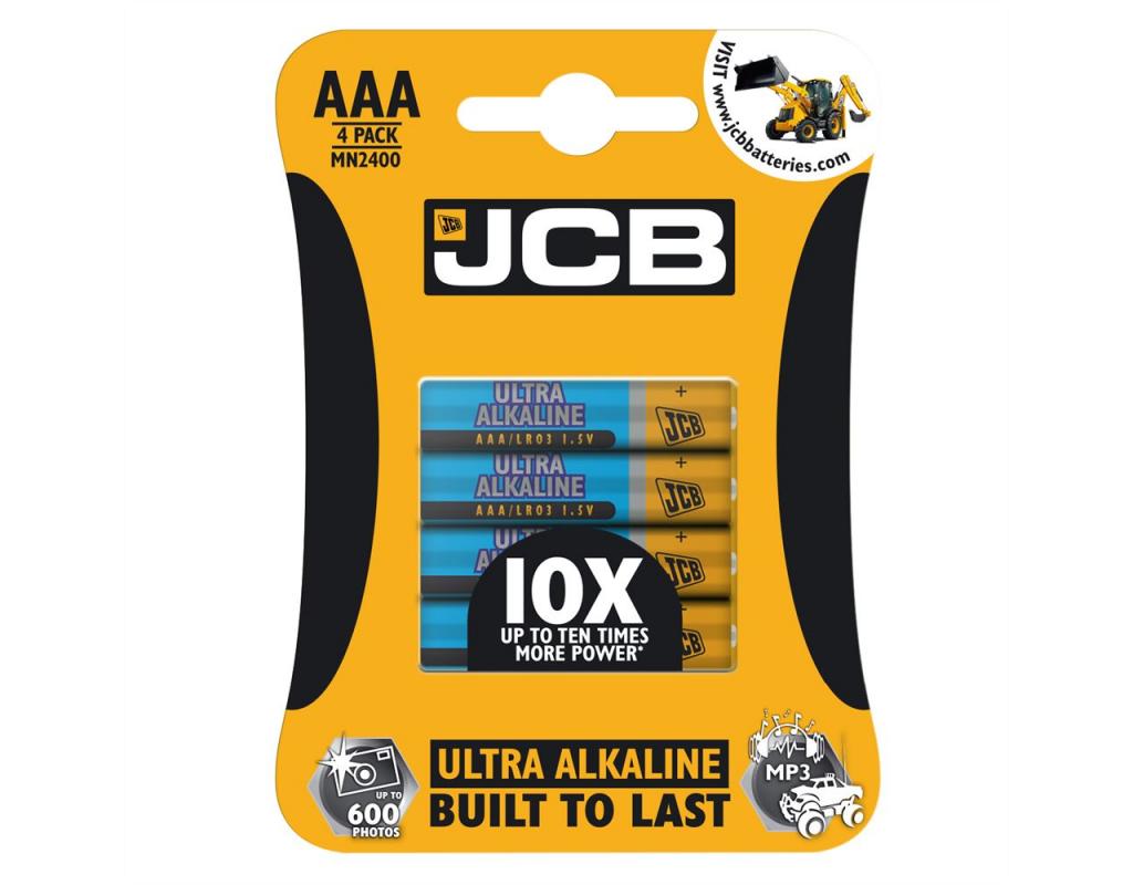 JCB Ultra Alkaline batteries are the most powerful batteries in the JCB range (vs. leading ordinary zinc batteries). The JCB Ultra Alkaline range are perfect batteries for all types of devices such as digital cameras, remote controls an last up to ten times longer than a standard zinc battery.