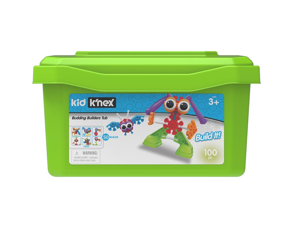 Make learning more fun and exciting with the Budding Builders Building Set from Kid K'NEX! Help your child learn the basic concepts of building with a toy set that lets them learn while playing! Promote creativity as you introduce your children to the art of creating with a toy that lets them not only have fun, but express their ideas! This building set contains 100 parts, in vibrant colors and with premium-quality construction. It includes special pieces such as colorful eyes, curly tails, flappy ears, big feet, bendable joints, and spinning propellers your child can use to create a whimsical interpretation of his favorite animal! Allow your builders to craft basic-looking figures on their own, and guide them in constructing complex structures that will ignite their curiosity!Each Budding Builders Building Set comes with an instructions sheet that contains step-by-step procedures and 50 building ideas. This set comes in a reusable plastic tub that allows convenient storage of the pieces, so you can bring the toy on family outings without the hassle of packing. The durable tub is made of premium plastic guaranteed to last as long as the set itself.Encourage and support your children's development by igniting their natural curiosity and creativity. Building with the Budding Builders Building Set hones a child's hand-eye coordination, fine motor skills, problem-solving abilities, cognitive functions, and spatial intelligence. Let your child's imagination to flourish with this construction educational toy! Let them design, construct, and customize their own models and enjoy hours of fun, playing and learning with them.Get your children the Budding Builders Building Set today, and allow their creativity and imagination to soar to greater heights at a young age.