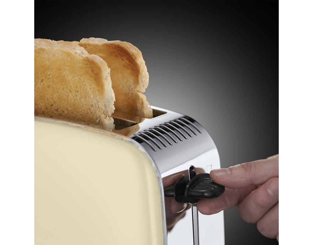 It’s time to add a splash of colour to your kitchen with the Russell Hobbs Colours Plus Range. This classic cream toaster is perfect for those looking to make a statement in their home and the chrome accents add a hint of modern style to the outer casing.