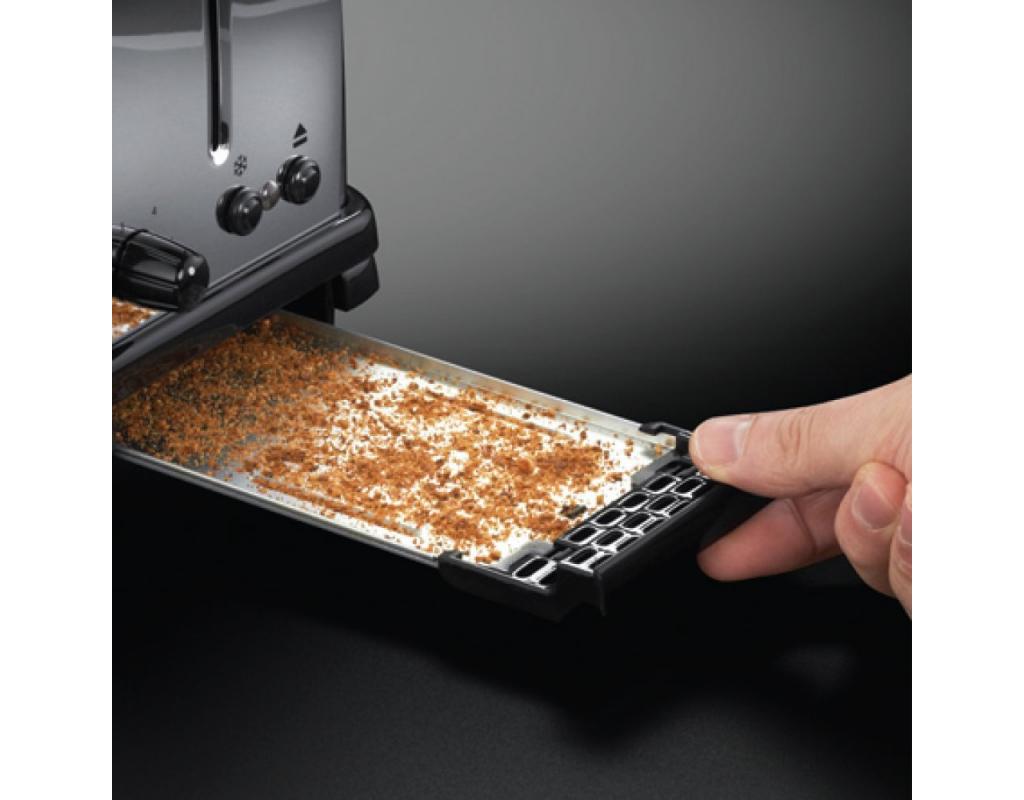 The built-in crumb tray easily slides in and out and keeps your work surfaces mess free.