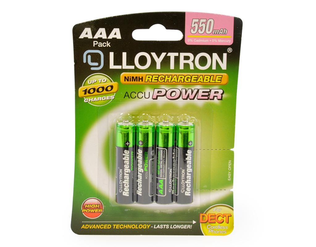 Lloytron B014 Rechargeable Accupower AAA Ni-MH Batteries 550mAh - 4 Pack