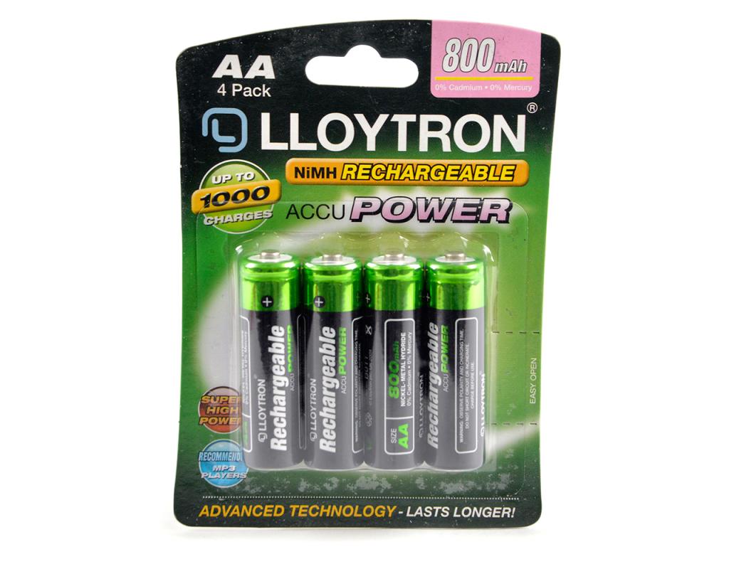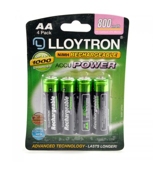 Lloytron B011 Rechargeable Accupower AA Ni-MH Batteries 800mAh - 4 Pack