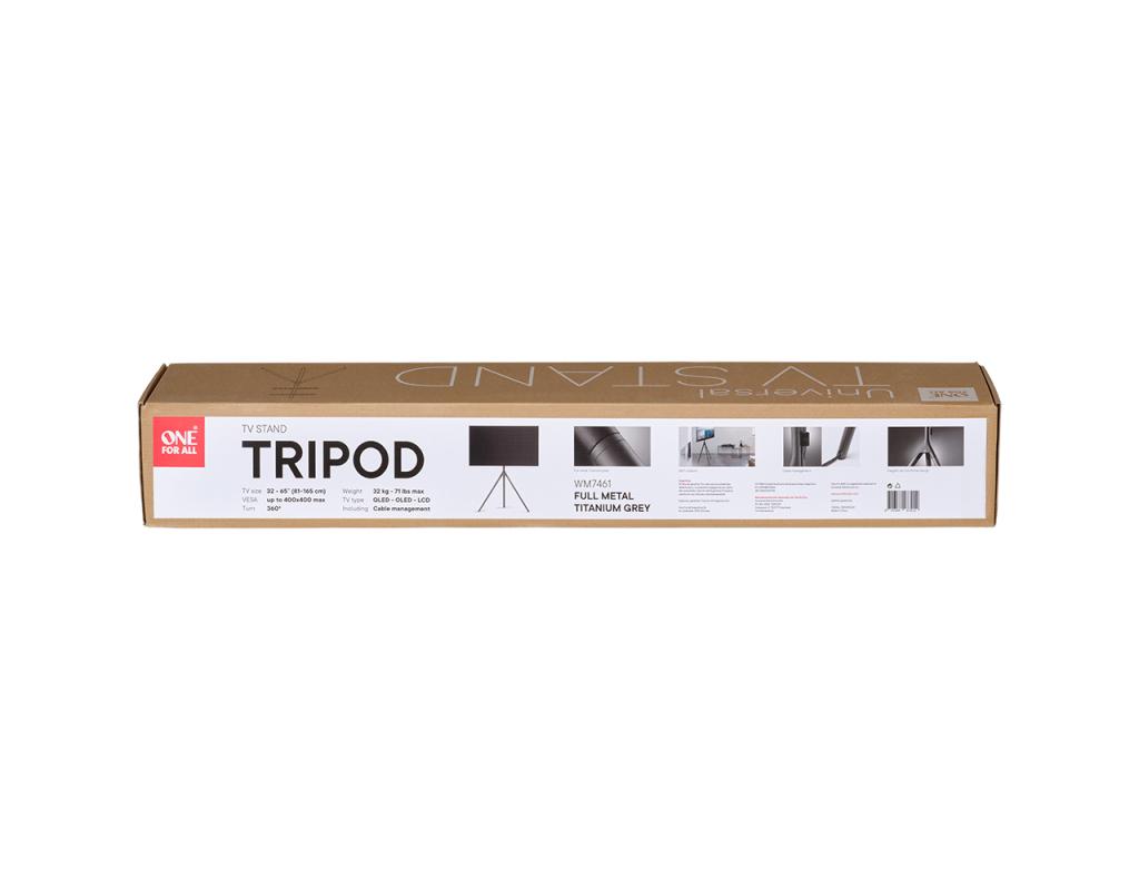 This stylish TV Stand allows you to mount your 32-65” TV without the need to drill holes. Based on the Red Dot winning design of the One For All Tripod TV Stand will give a modern look to your interior. This free-standing Tripod is height adjustable and features 360° swivel functionality.