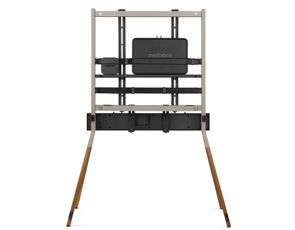 Our stylish TV Stand allows you to mount your 32-65” TV without the need to drill holes. Handmade from real wood, it will give a modern look to your interior. This free-standing Tripod is height adjustable and features 360° swivel functionality.