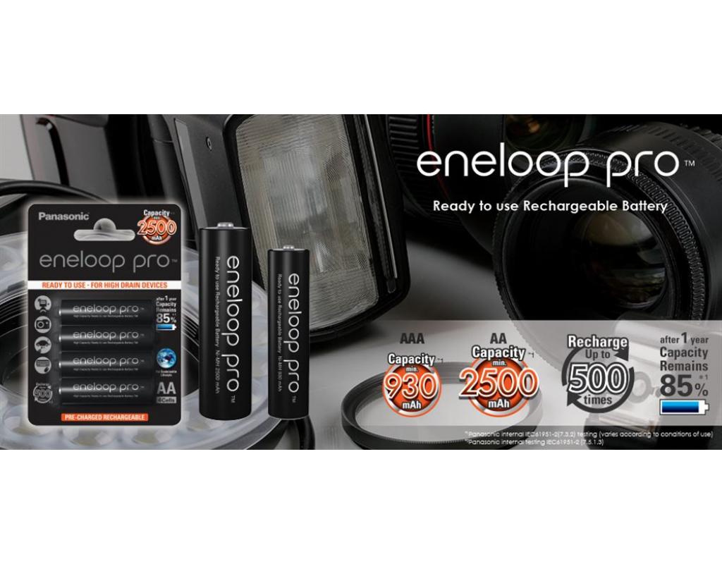 Pack of 4 Eneloop Pro AAA 2500mAh batteries.