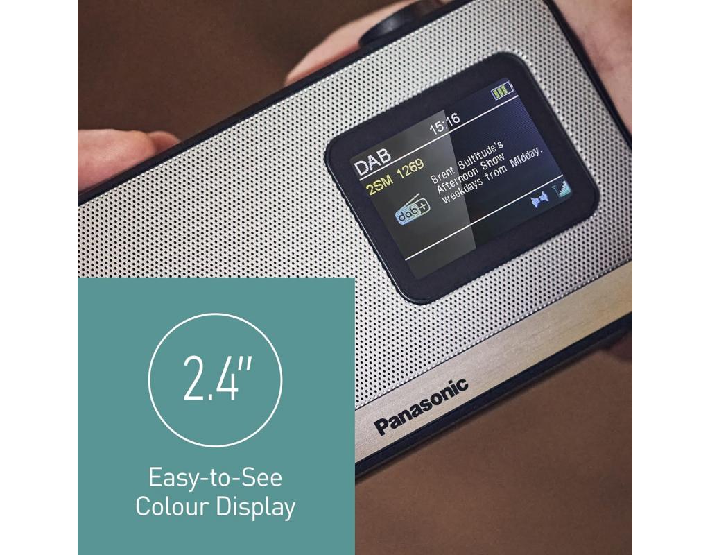 With a generous 2.4" (6cm) colour display, it''s easy to see what station the radio''s tuned into, check signal strength, time and battery life status. It''s dimmable to 3 levels, perfect for the bedroom or a bright kitchen.