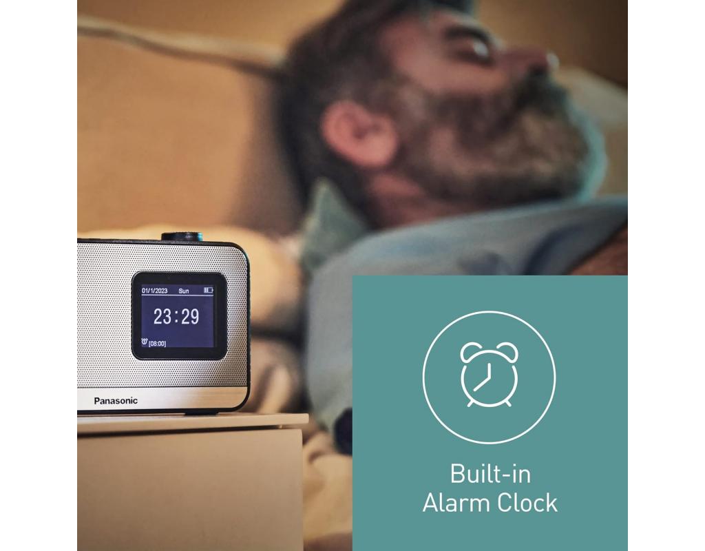 With its built-in clock, RF-D15''s perfect for the bedroom. You can drift off to sleep listening to the radio (it can switch itself off automatically), and then it can gently wake you up in the morning with the news.