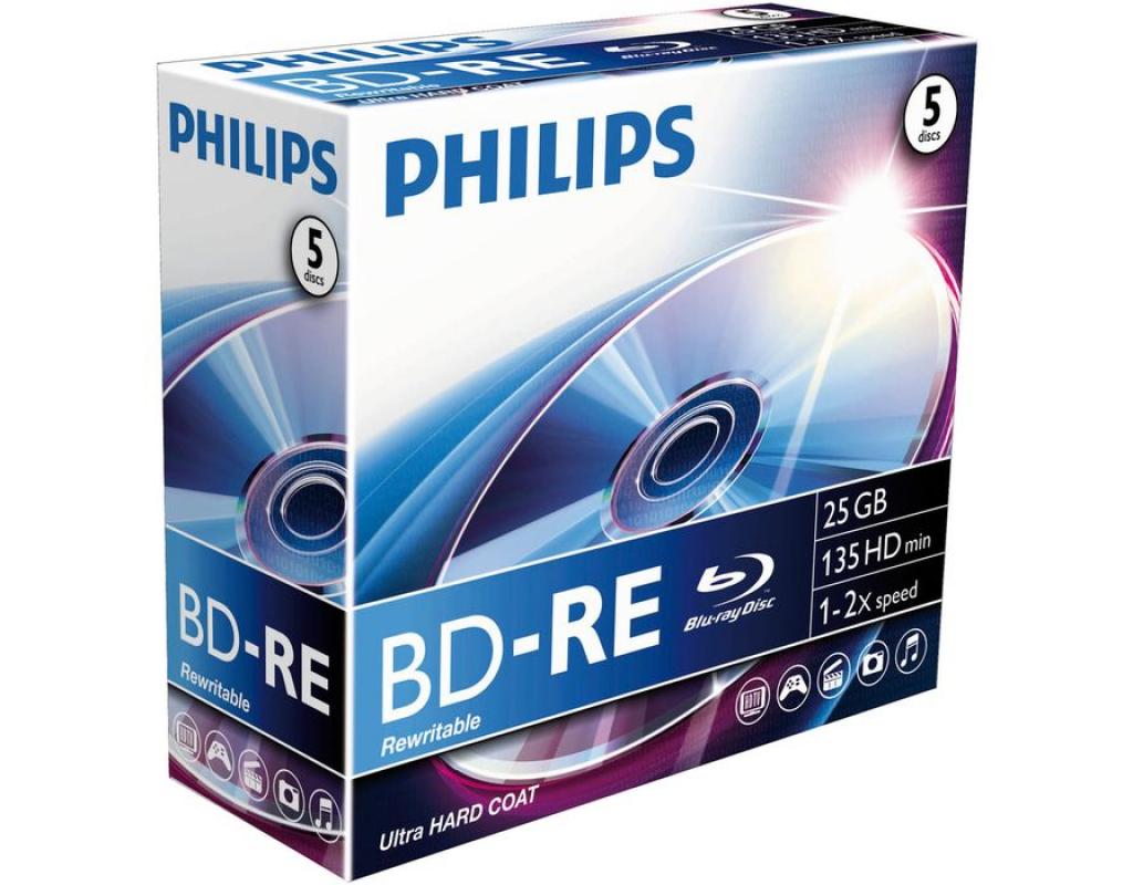Philips PHIBD-RE25GB5JC Blu-Ray ReWritable 25GB 2x (Jewel Case Pack of 5)