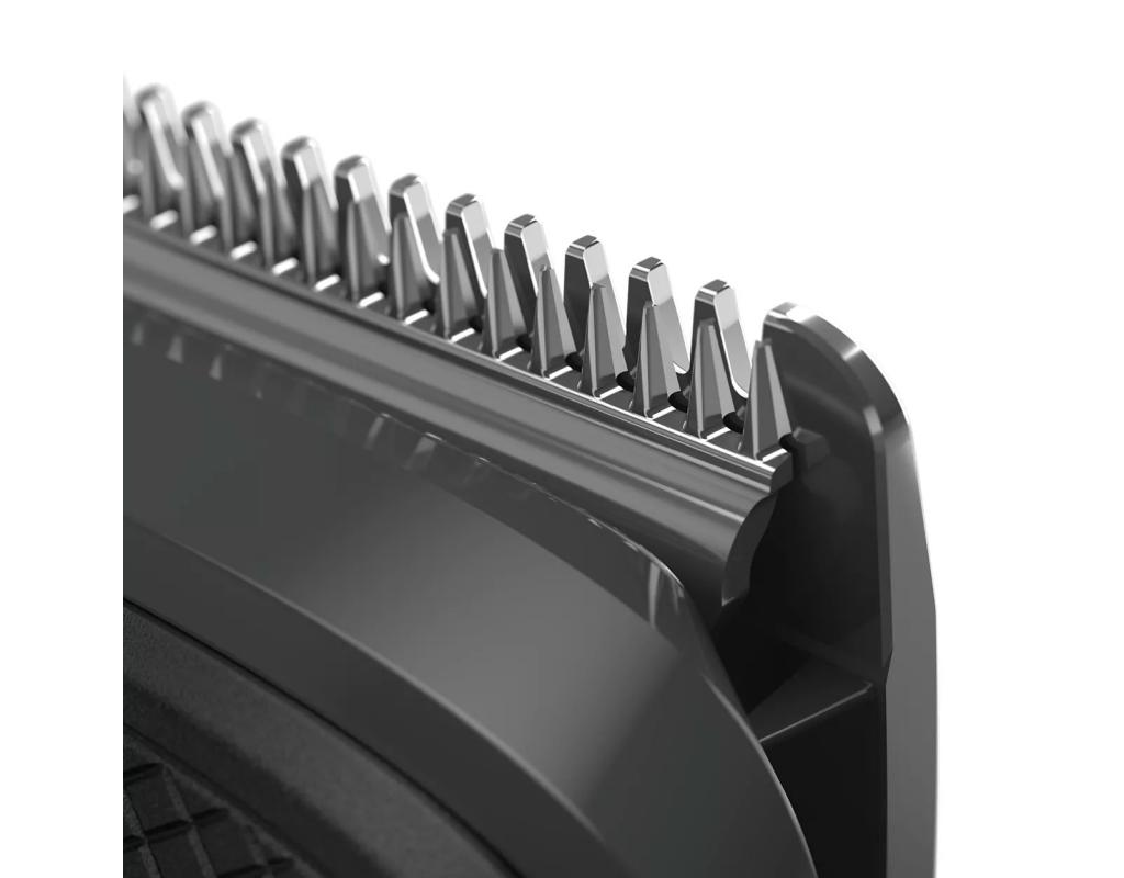 Craft your own personal look with this versatile trimmer, which includes 11 quality tools for styling your face, hair and body. Its DualCut blades deliver maximum precision and the no-slip rubber grip improves comfort and control.