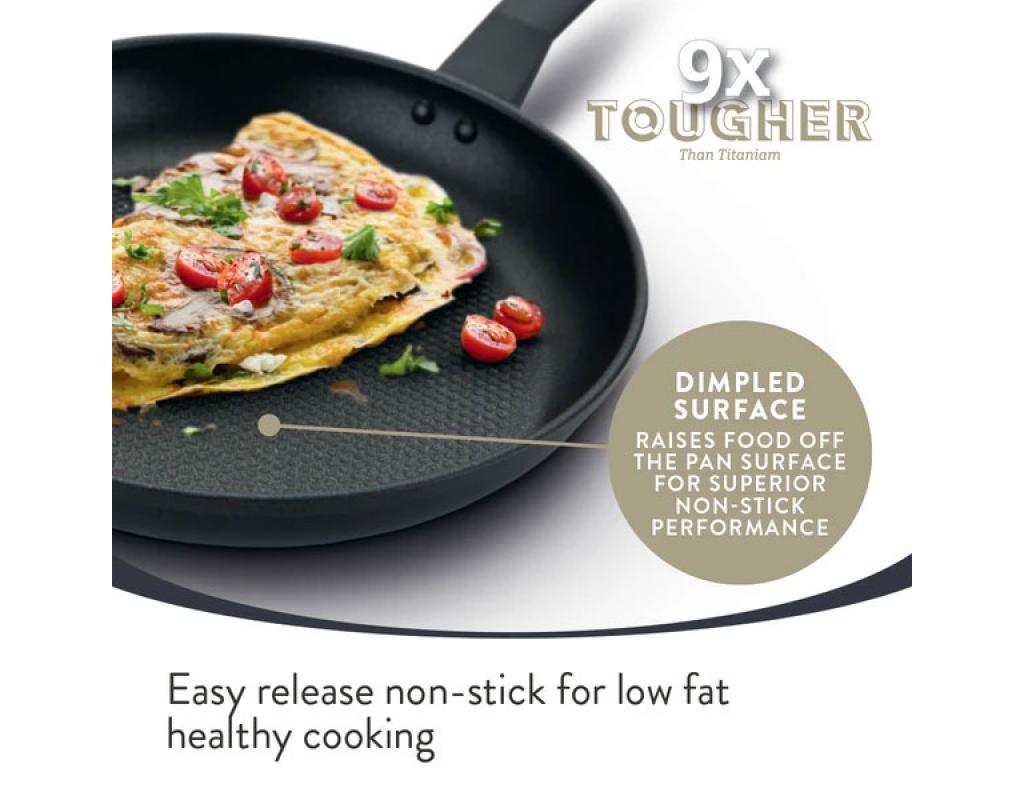- DIMPLED NON-STICK - Our large saucepan and frying pan set is equipped with a durable, dimpled and superior scratch resistant non stick for low fat healthy cooking and easy cleaning.