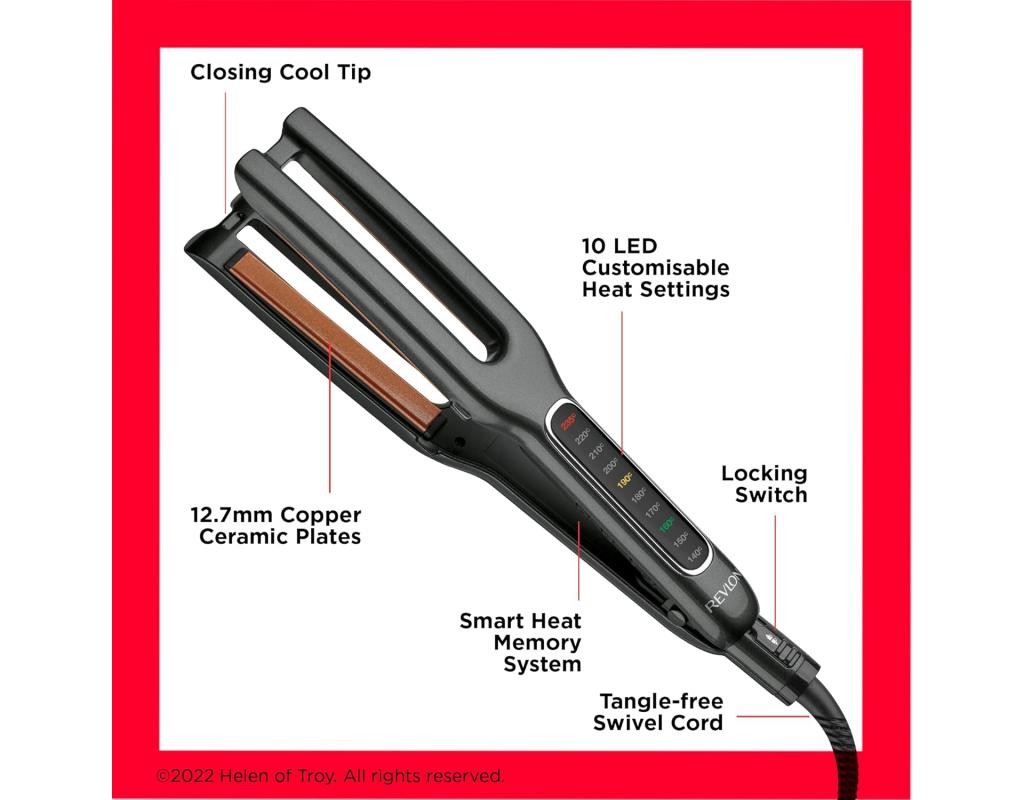 The sleek and ergonomic design of the Revlon Double Straight ensures a comfortable grip during styling. The 360-degree swivel cord adds flexibility, preventing tangling and making it easy to reach every section of your hair.