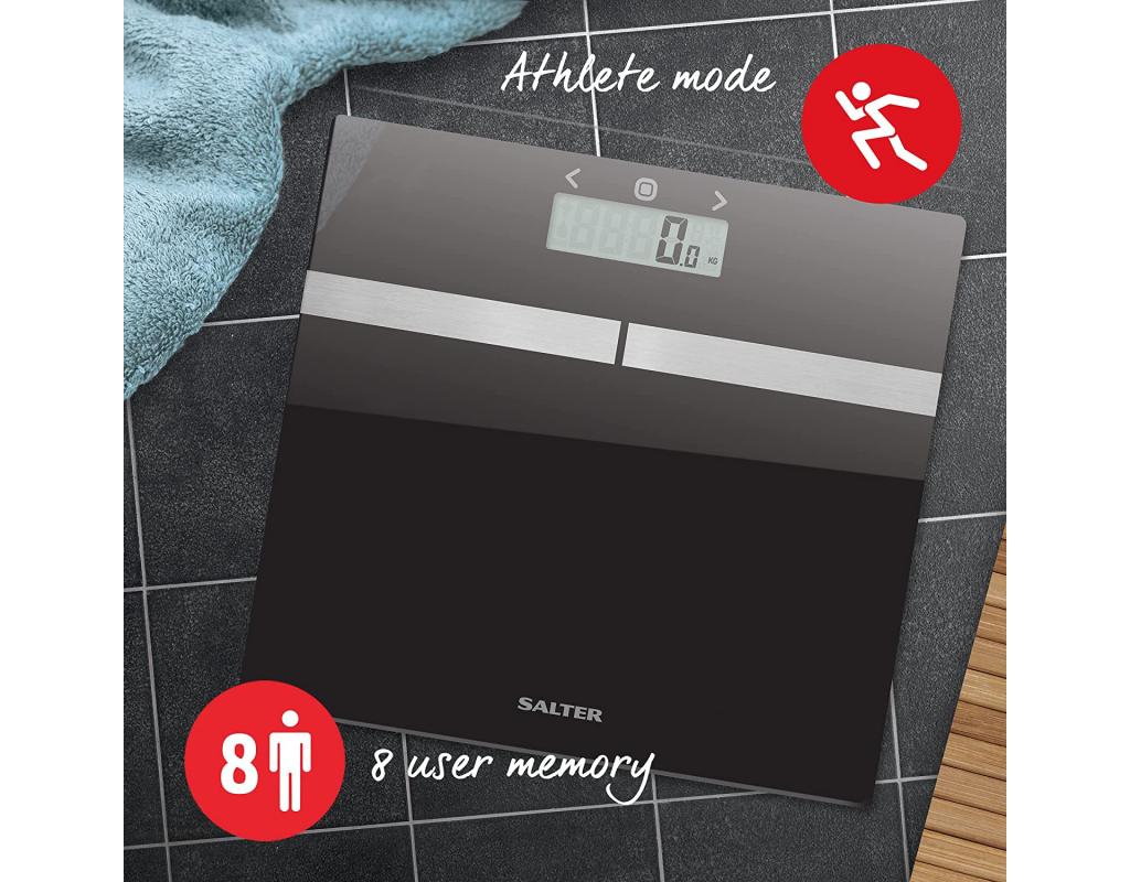 Get your weight as well as body fat percentage, body water percentage and BMI with the Salter Glass Analyser Bathroom Scale. Designed with a large LCD display and a spacious platform, this scale features an 8-user memory allowing you to create 8 user profile and monitor readings for multiple profiles conveniently. The athlete mode allows you to keep track of your fitness goals if you exercise regularly. With its modern design and ultra-slim toughened platform, the Salter Glass Analyser Bathroom Scale is the future of floor scales!