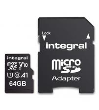 Integral INMSDX64G10 Micro SD Card 64GB with SD Adapter - Class 10 Integral High Speed microSDHC .....