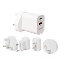 Groov-e GVMA113WE USB-C & USB-A Mains Charger 20W with Worldwide Travel Adaptors - White Enjo.....