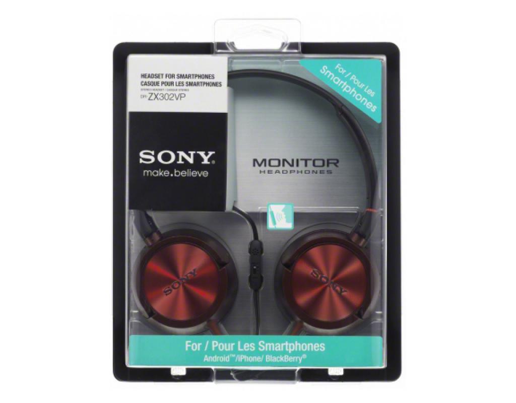 Sony DR-ZX302VPR Headphones for Smartphone - Red