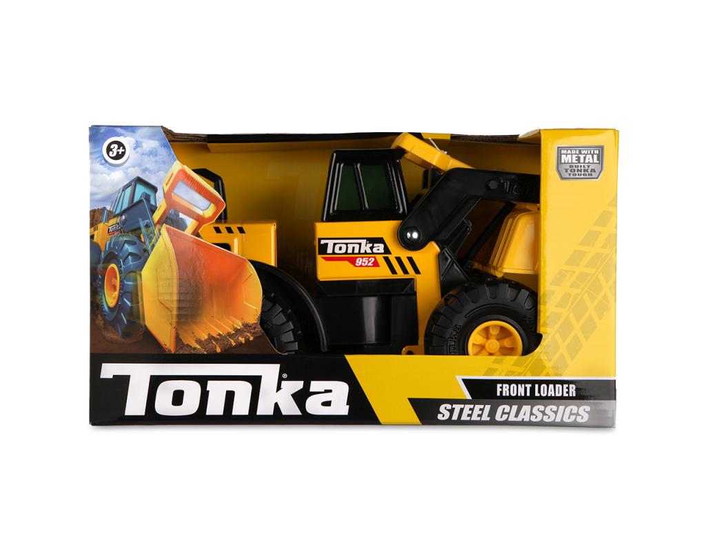 Rush to the rescue with the Tonka Classics Steel Front Loader, equipped to handle heavy loading and withstand any playtime fun. This truck is great for hauling and the steel construction makes it great for the toughest loading jobs. The front loader can be moved up and down to trigger its unloading action. This truck is constructed from Metal and Plastic, making it perfect for playtime activities and built to last for years, with no assembly time included just timeless hours of fun with your favorite Tonka Truck.