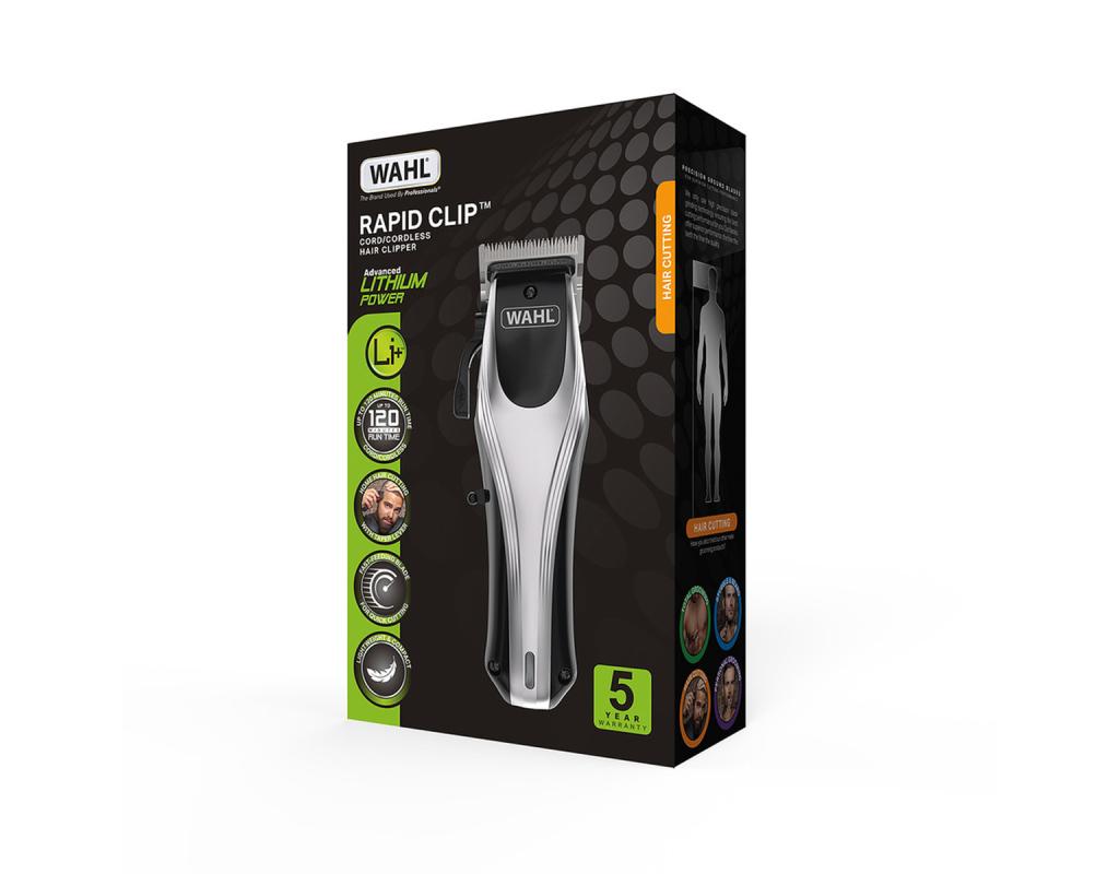 The Wahl Rapid Clip is a high performance cord/cordless clipper ideal for home haircutting, with precision ground blades and adjustable taper lever for a wider variety of cutting lengths. The lightweight, compact design makes it easy to work around the contours of the head.